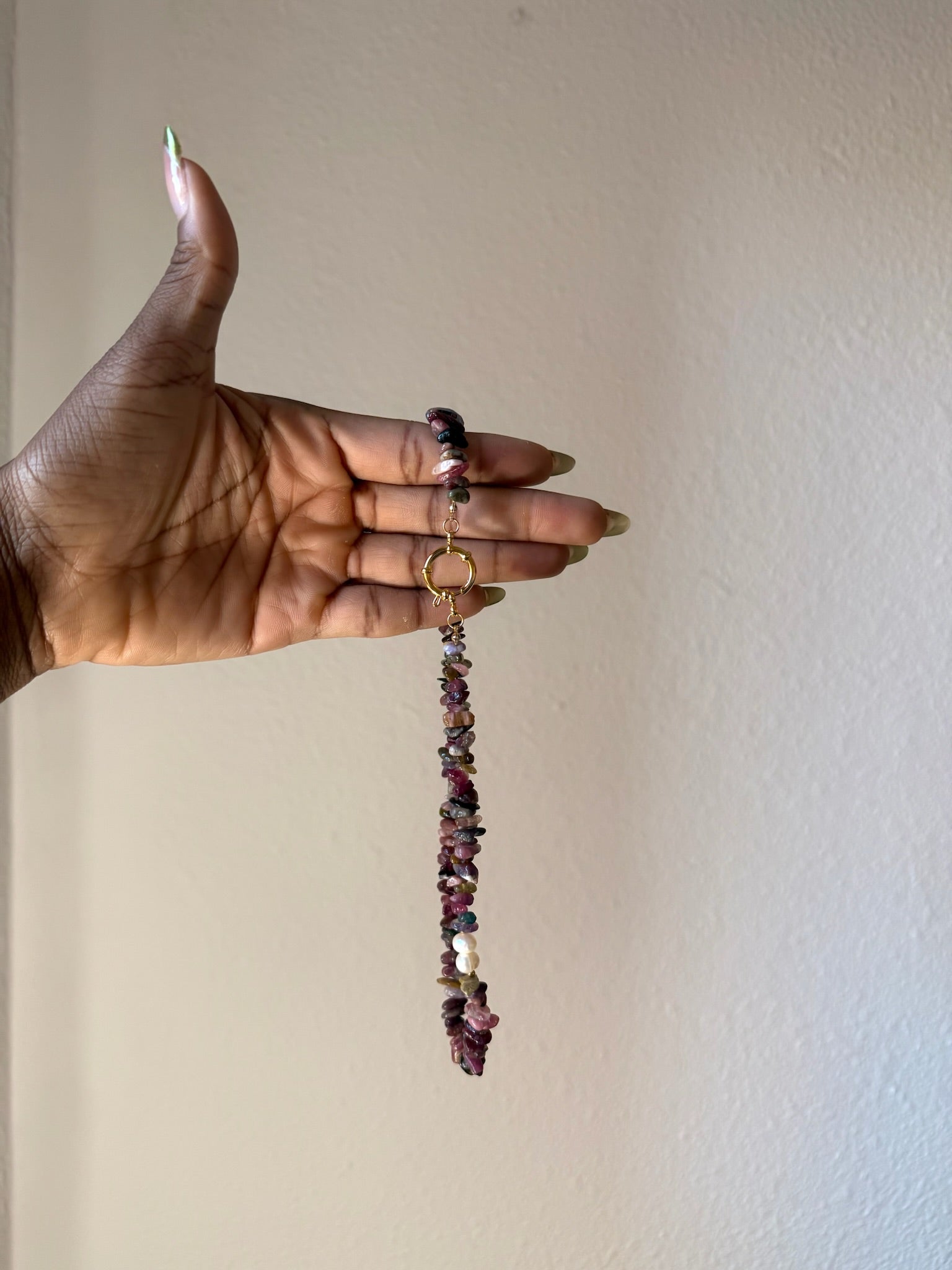 40 cm de piedras naturales mezcladas con varios tipos de piedras inspiradas en los colores del otoño con el divertido cierre de acero inoxidable.
