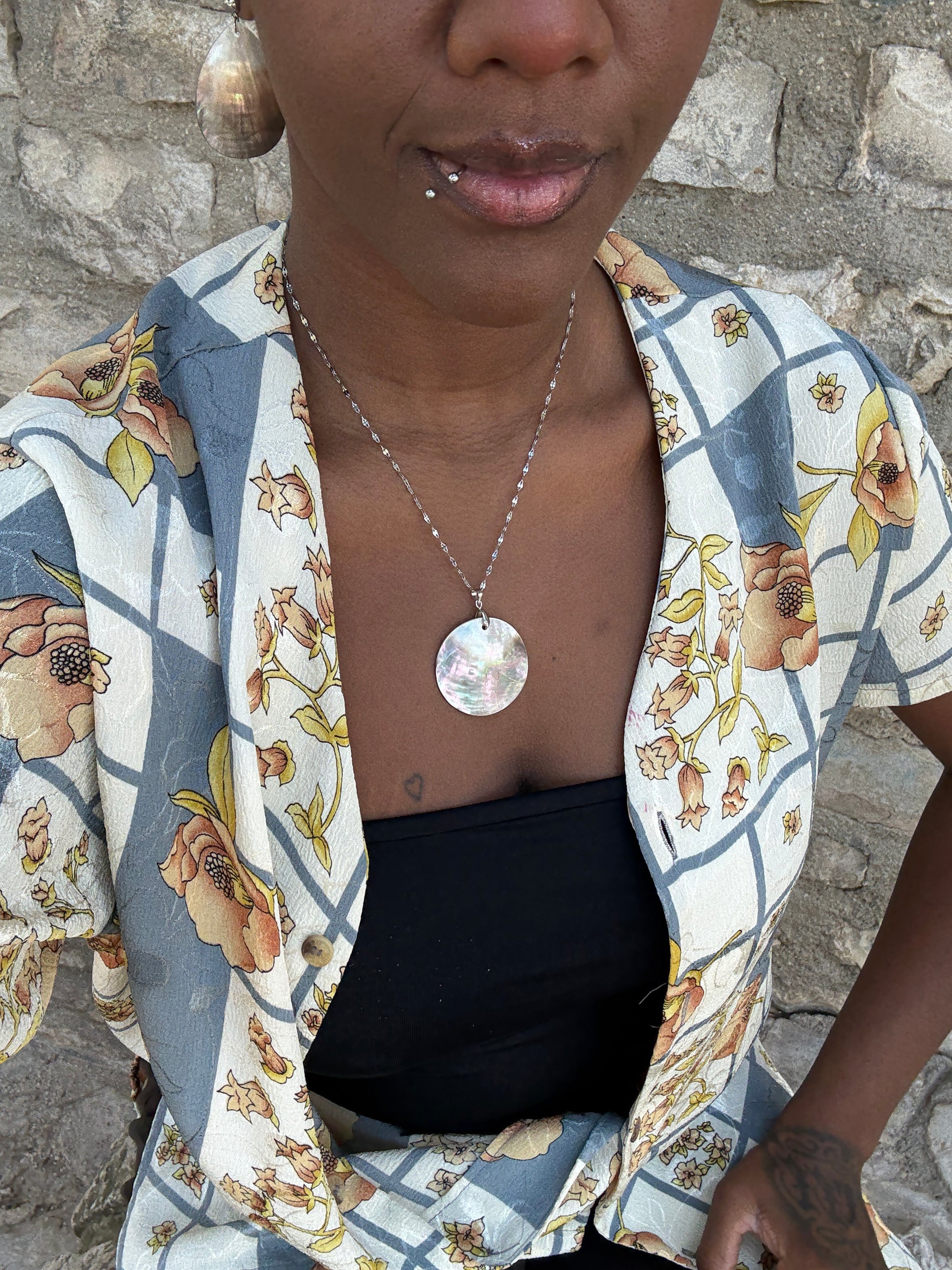 55cm cadena en acero inoxidable, ese pendiente es puro encanto y la piedra abalón tiene propiedades asociadas a la calma, la protección y la sanación emocional, derivado de su conexión con el agua y el mar. Se cree que ayuda a reducir el estrés, la ansiedad y el miedo, y promueve la autoexpresión, la intuición y el equilibrio.