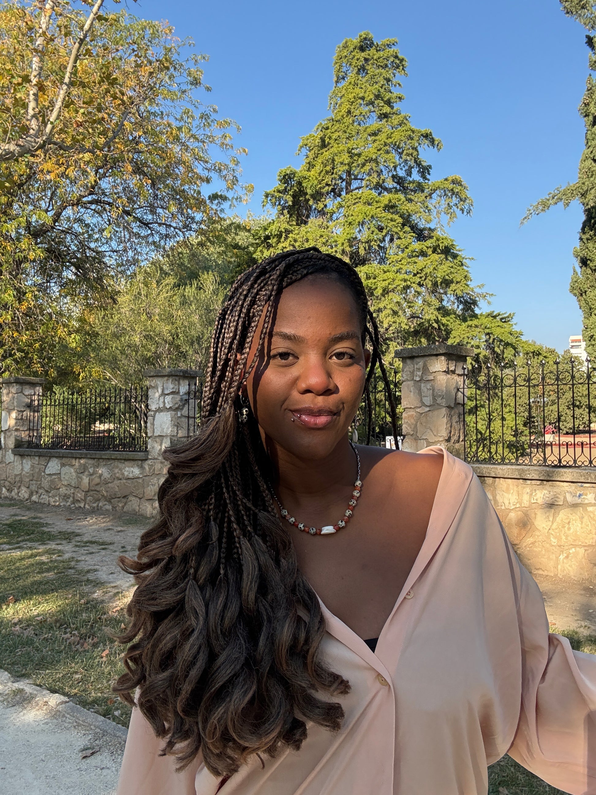 En el medio del collar tenemos madreperla en crema, collares mitad mitad son muy originales.
