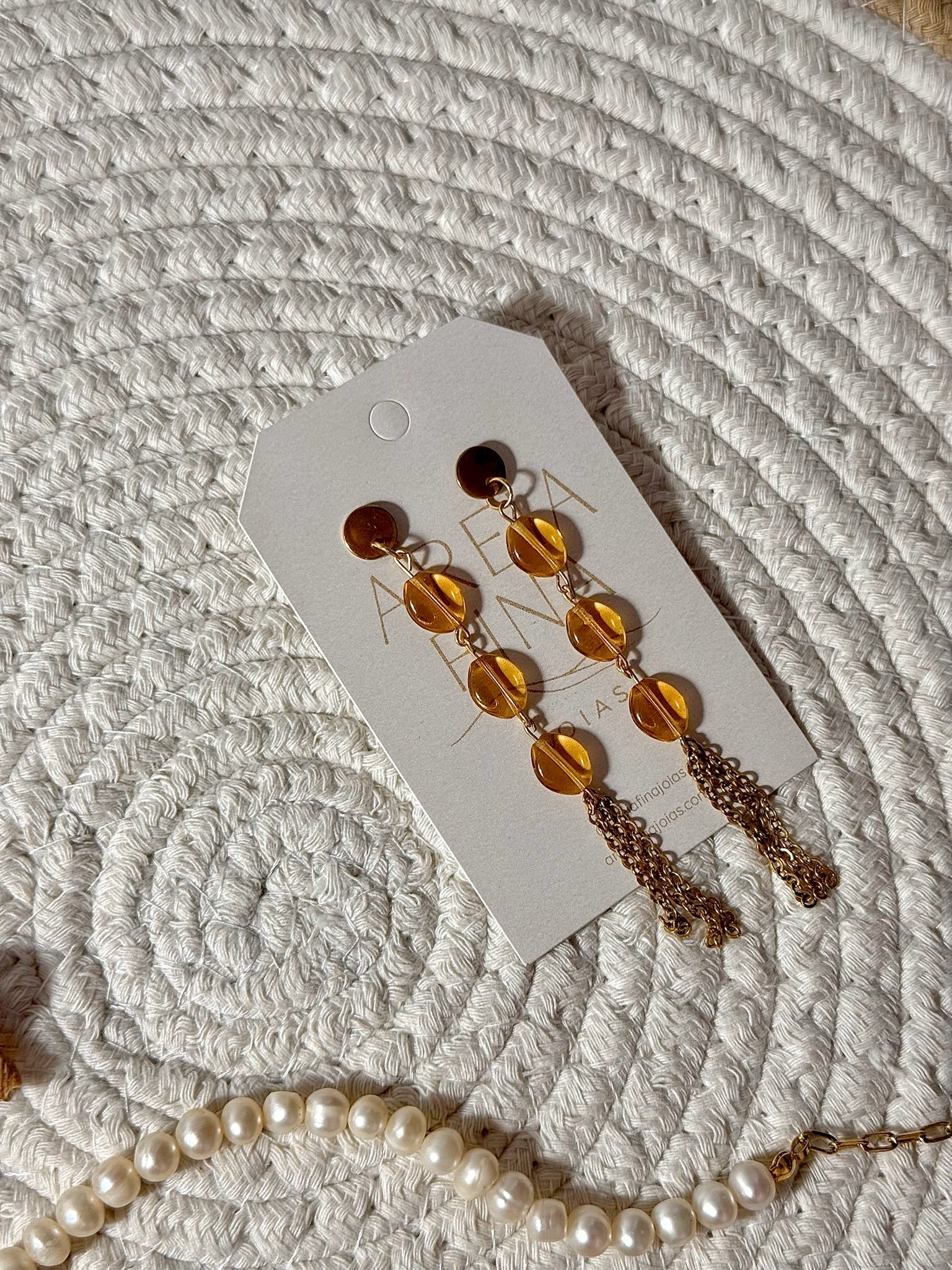hecho a mano con piedras naturales de citrino este pendiente es pura energía...