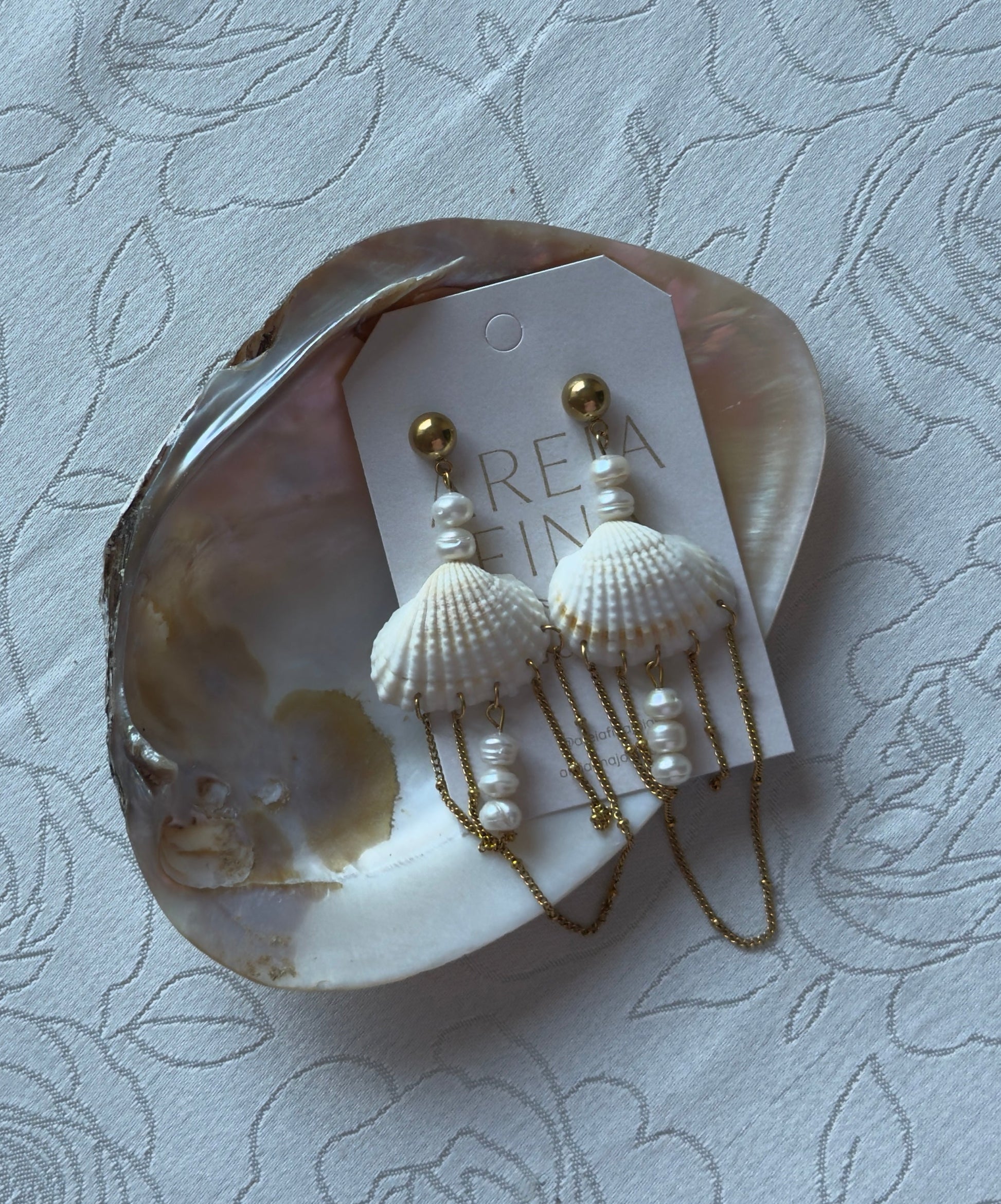 Compuesto con conchas de mar, piedras de agua dulce y cadenas doradas de acero inoxidable dorado, es imposible no enamorarse de esta preciosidad.